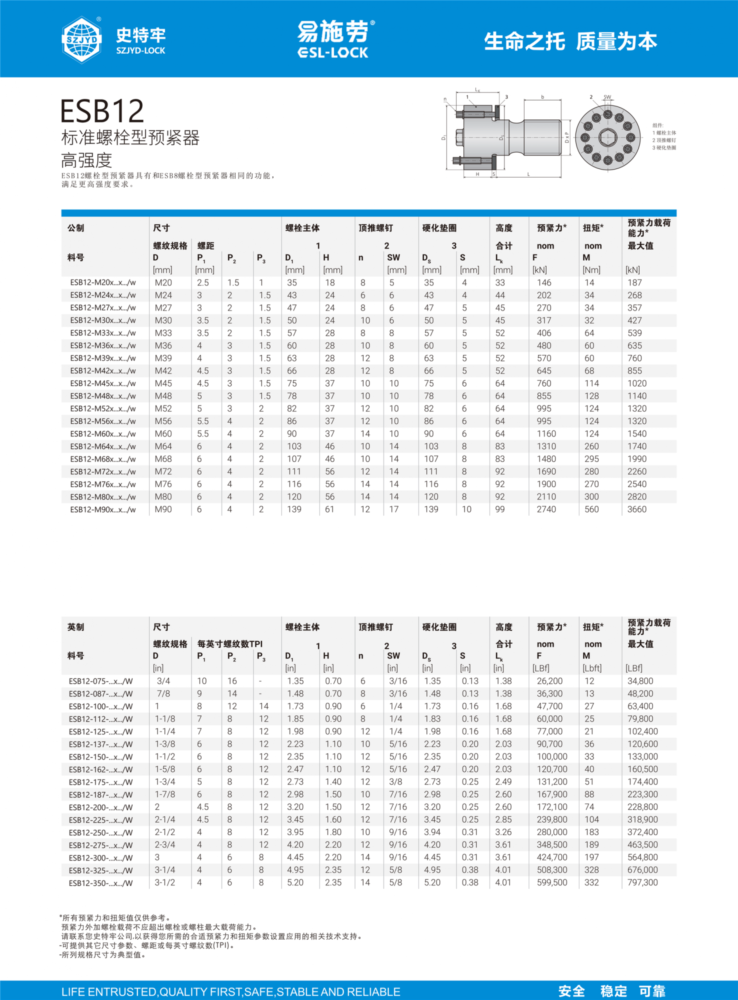多頂推超級(jí)預(yù)緊器,可在很小空間安裝,使用簡(jiǎn)單工具即可輕松預(yù)緊,節(jié)省安裝時(shí)間,ESL-LOCK品牌易施勞超級(jí)螺母具有完全的防松鎖緊功能,可多次拆卸重復(fù)使用。特別適用于M24規(guī)格以上大型螺栓鎖緊!一擰永固,永不松動(dòng)!使用常規(guī)格為合金材料及特殊不銹鋼合金材料以及鎳基合金材料!更多了解歡迎咨詢我們.....